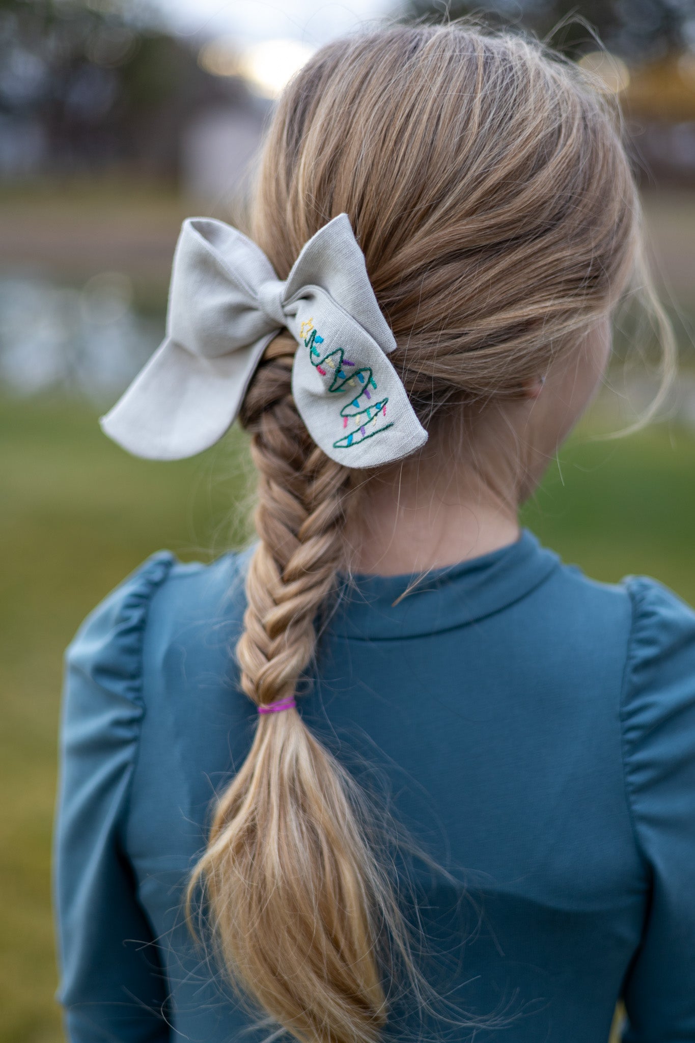 The Harmony hair bow pattern is an easy, beginner-friendly project perfect for using up those fabric scraps! This casual and versatile bow features curved tails and a simple bow centre. Available in two sizes—small (4 inches) and large (5 inches)—it’s ideal for babies, toddlers, and older kids. Customize it by adding one of our petite sized embroidery designs, plus your preferred hardware, like an alligator clip or headband. Perfect for pigtails, ponytails, or adding a finishing touch to any hairstyle or outfit!